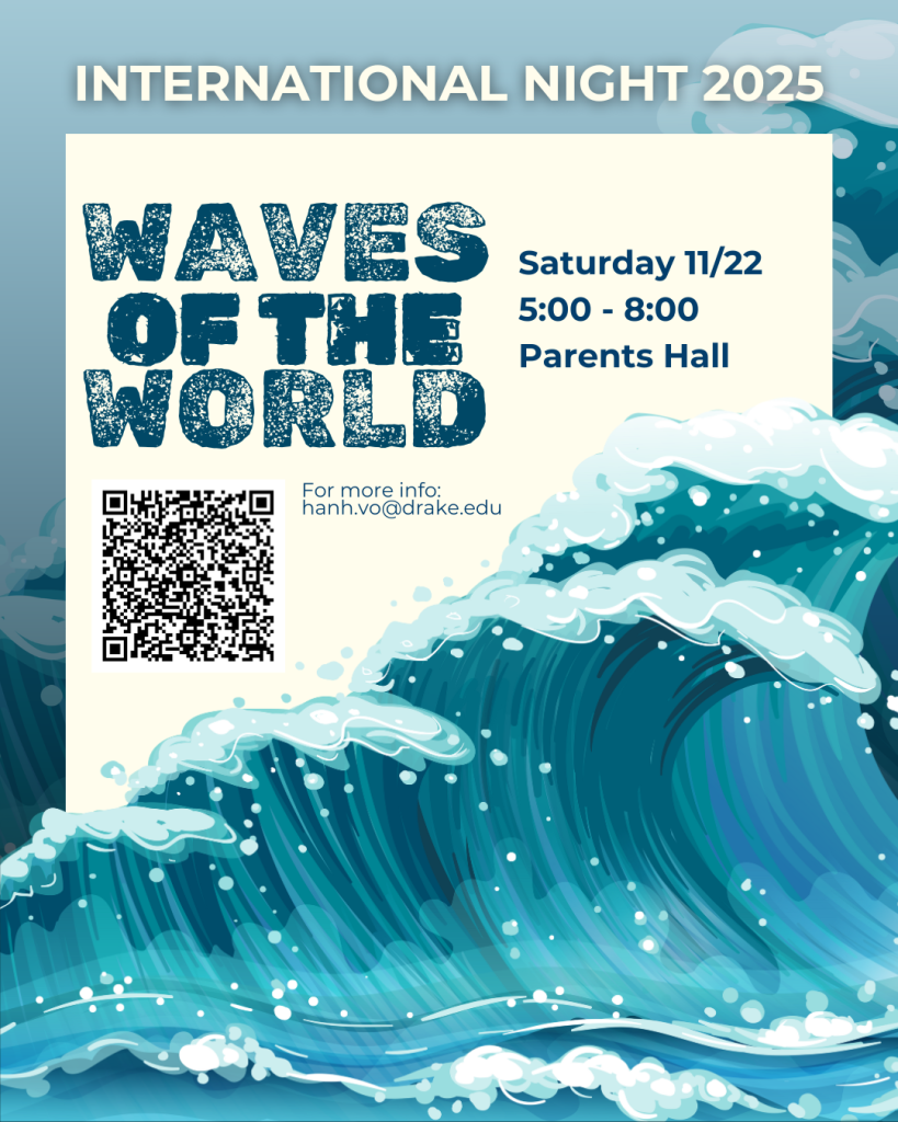 Friday, October 24 – Women’s Volleyball Game 📍 Knapp Center 🕔 Meet at 5:45 p.m. in the Knapp Center Lobby. Game starts at 6:00 p.m. Cheer on the Bulldogs as they take on Indiana State! Students get in free! We also have a limited number of free tickets for a Drake student’s plus one (while supplies last). Please email Alicia.hilligas@drake.edu if you are planning to bring a guest.