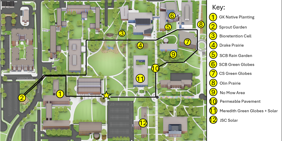 Join the Sustainability Coordinator for a lovely Fall walk to learn about the sustainability initiatives around campus. The walk will be held Tuesday, Oct. 28, at 12 p.m. We will meet at the start of the Bulldog Mile by the Olmsted Center (see the star on the map).